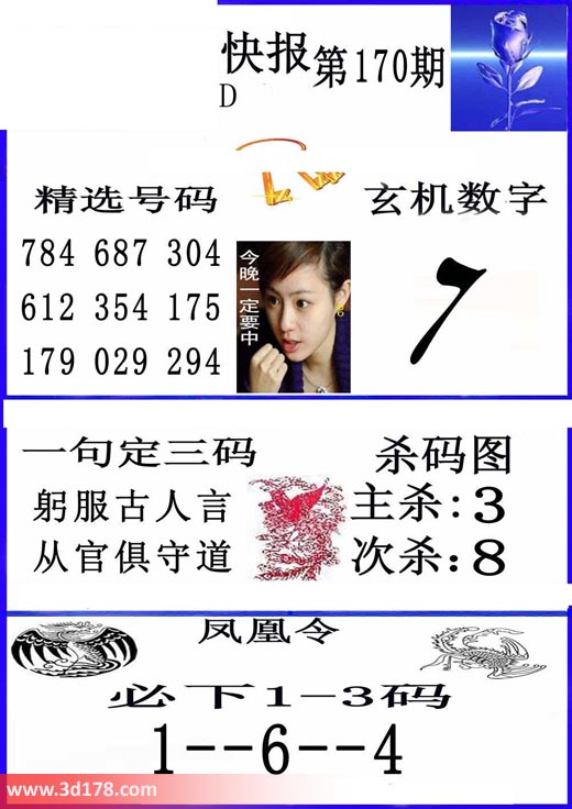 福彩3d凤凰快报图第18170期精选号码推荐: