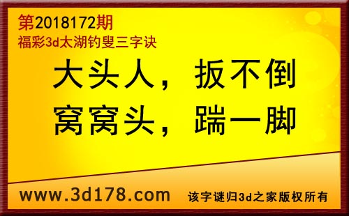 3d第18172期太湖字谜:大头人,扳不倒,窝窝头,踹一脚