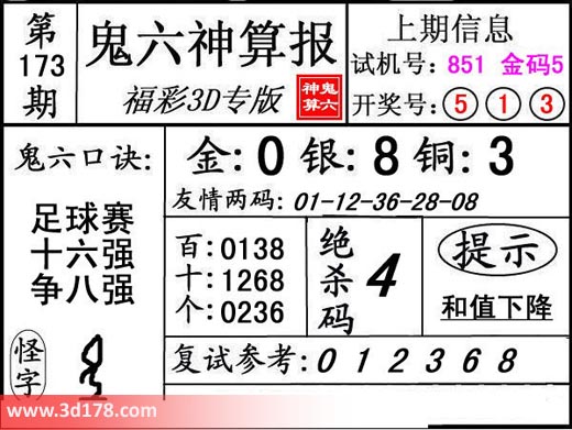 3d第18173期鬼六神算报为您推荐鬼六口诀: