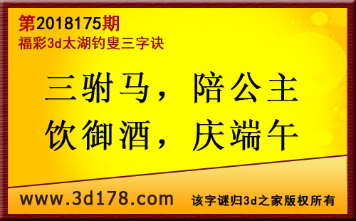 3d第18175期太湖字谜:三驸马,陪公主,饮御酒,庆端午