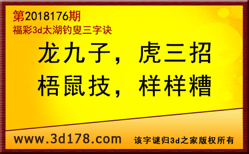 3d第18176期太湖字谜:龙九子,虎三招,梧鼠技,样样糟