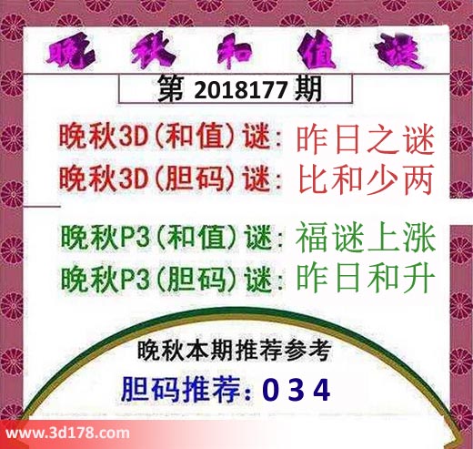 晚秋p3(胆码)谜:昨日和升