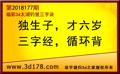 3d第18177期太湖字谜:独生子,才六岁,三字经,循环背