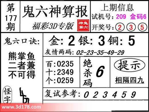 3d第18177期鬼六神算报为您推荐鬼六口诀: