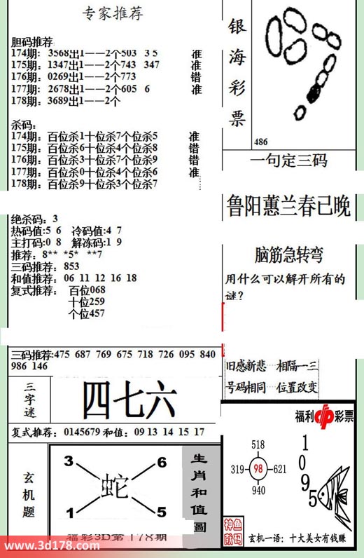 178期:百位杀9 十位杀3 个位杀7