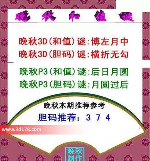 晚秋3D(和值)谜:博左月中