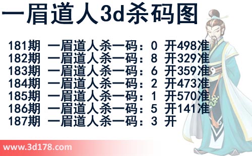 该一眉道人3d杀码图由3d之家3d图库频道原创,仅供彩民参考,温馨提供。