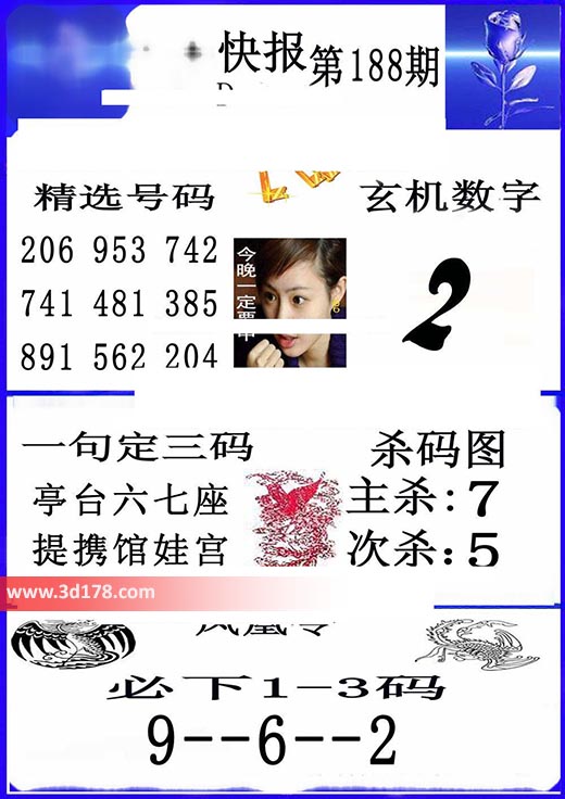 福彩3d凤凰快报图第18188期精选号码推荐: