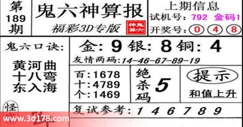 3d第18189期鬼六神算报为您推荐鬼六口诀: