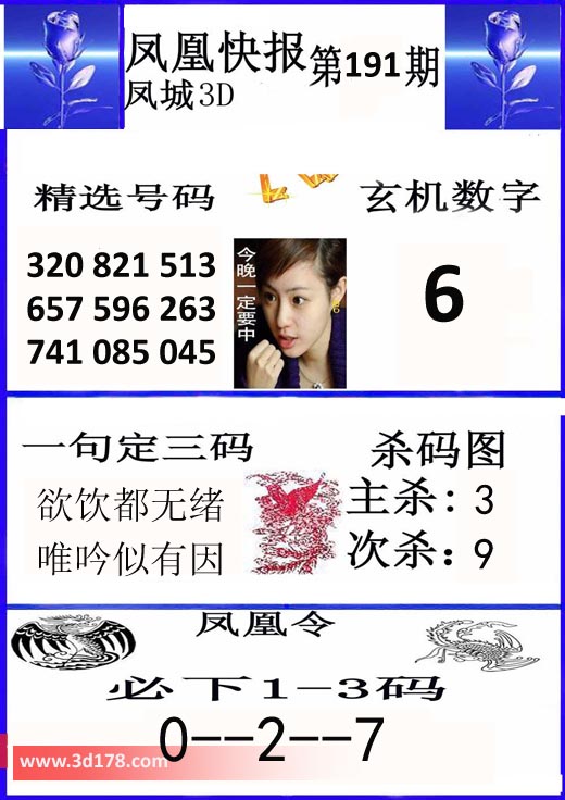 福彩3d凤凰快报图第18191期精选号码推荐: