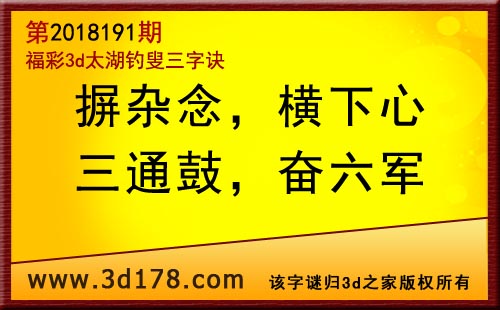 3d第18191期太湖字谜:摒杂念,横下心,三通鼓,奋六军