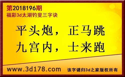 3d第18196期太湖字谜:平头炮,正马跳,九宫内,士来跑