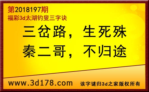 3d第18197期太湖字谜:三岔路,生死殊,秦二哥,不归途