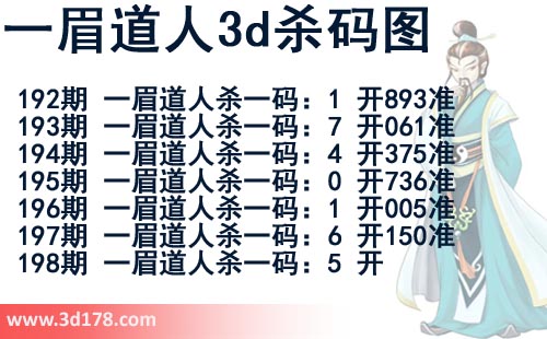 该一眉道人3d杀码图由3d之家3d图库频道原创,仅供彩民参考,温馨提供。