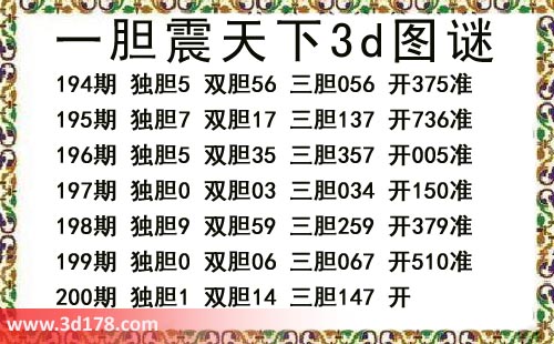 一胆震天下三胆图库由3d之家3d图库频道原创,仅供彩民参考,温馨提供。