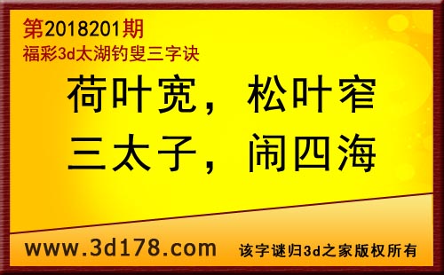 3d第18201期太湖字谜:荷叶宽,松叶窄,三太子,闹四海