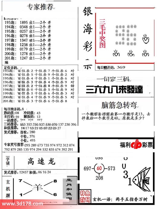 一句定三码:三六九八来发达
