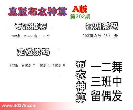 布衣神算:一二舞 三班中 留偶发