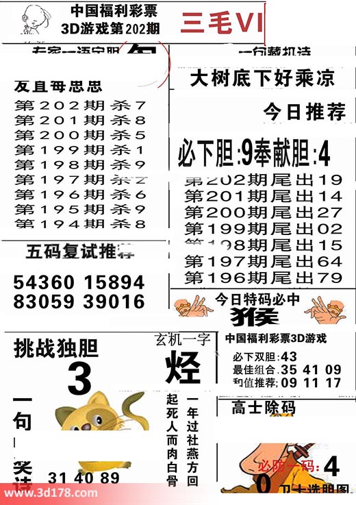 3d第2018202期三毛VIP详解: