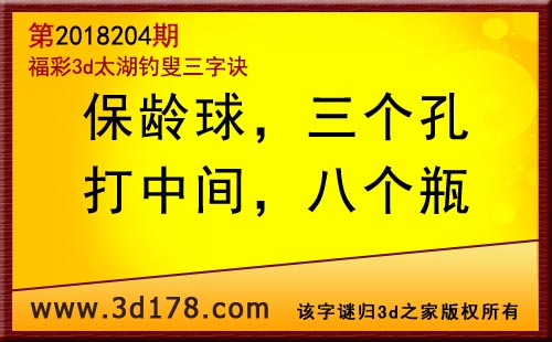 3d第18204期太湖字谜:保龄球,三个孔,打中间,八个瓶