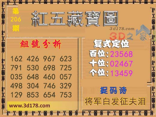 红五藏宝图3d第2018206期: