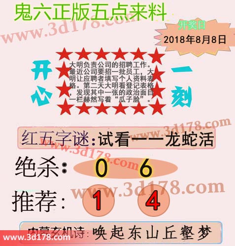 福彩3d第2018213期鬼六五点来料: