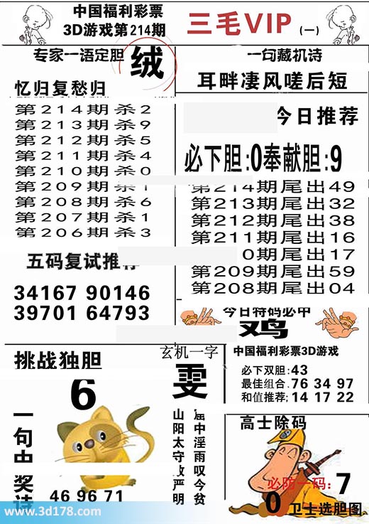 3d第2018214期三毛VIP详解: