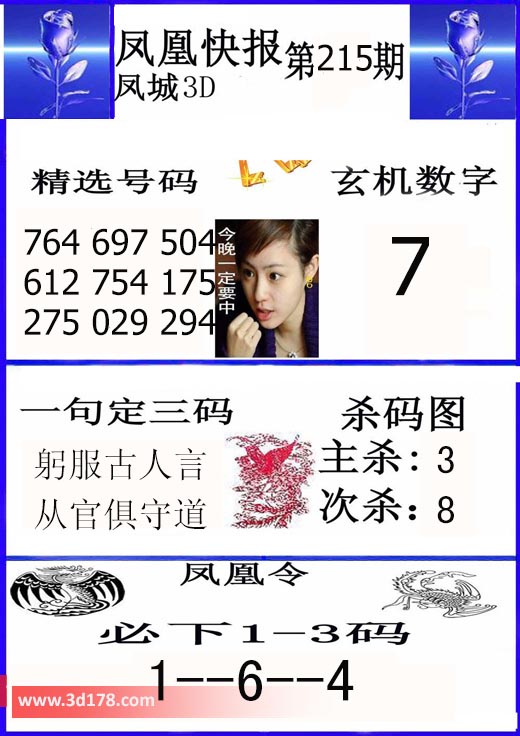 福彩3d凤凰快报图第18215期精选号码推荐: