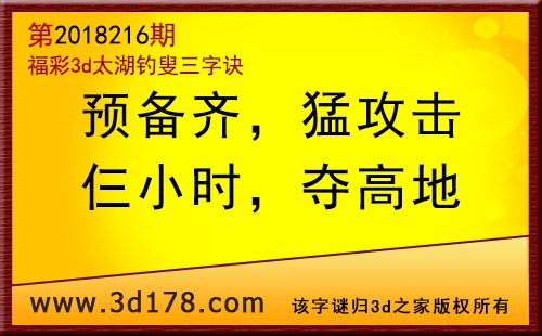 3d第18216期太湖字谜:预备齐,猛攻击,仨小时,夺高地