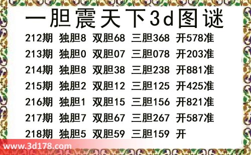 一胆震天下三胆图库由3d之家3d图库频道原创,仅供彩民参考,温馨提供。