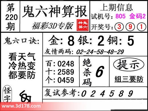 3d第18220期鬼六神算报为您推荐鬼六口诀: