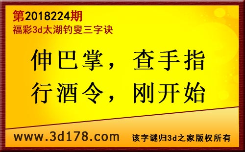 3d第18224期太湖字谜:伸巴掌,查手指,行酒令,刚开始
