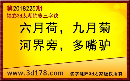 3d第18225期太湖字谜:六月荷,九月菊,河界旁,多嘴驴