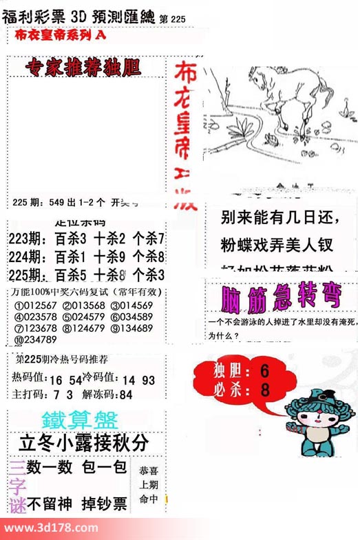 福彩3d第2018225期布衣皇帝A版布衣专家独家推荐: