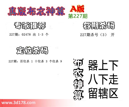 3d之家布衣图库之布衣神算图第2018227期详解: