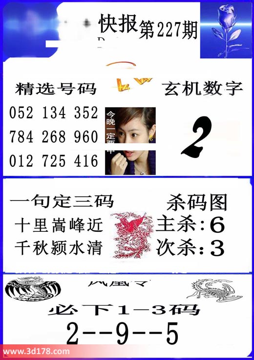 福彩3d凤凰快报图第18227期精选号码推荐: