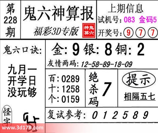 3d第18228期鬼六神算报为您推荐鬼六口诀: