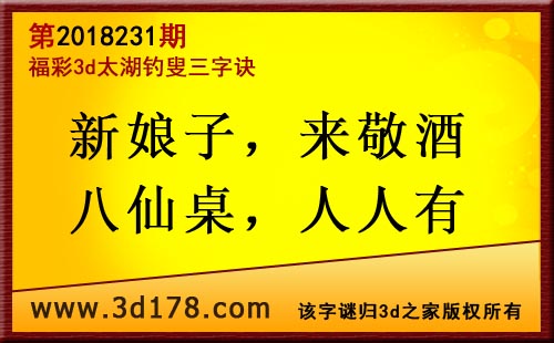 3d第18231期太湖字谜:新娘子,来敬酒,八仙桌,人人有
