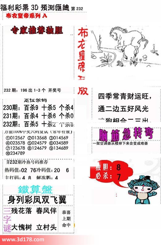 福彩3d第2018232期布衣皇帝A版布衣专家独家推荐: