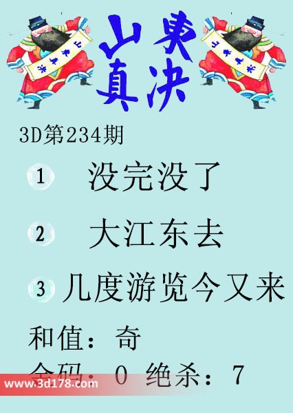 福彩3d第18234期山东真诀图如下所示: