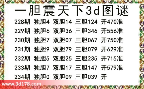 本期一胆震天下3d图谜: