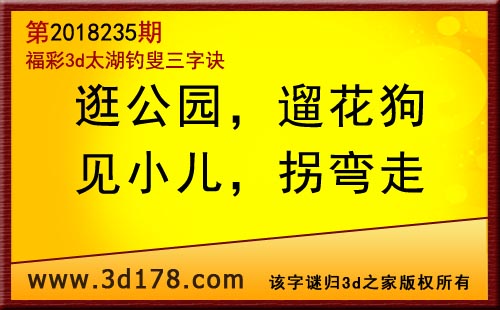 3d第18235期太湖字谜:逛公园,遛花狗,见小儿,拐弯走