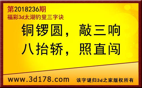 3d第18236期太湖字谜:铜锣圆,敲三响,八抬轿,照直闯