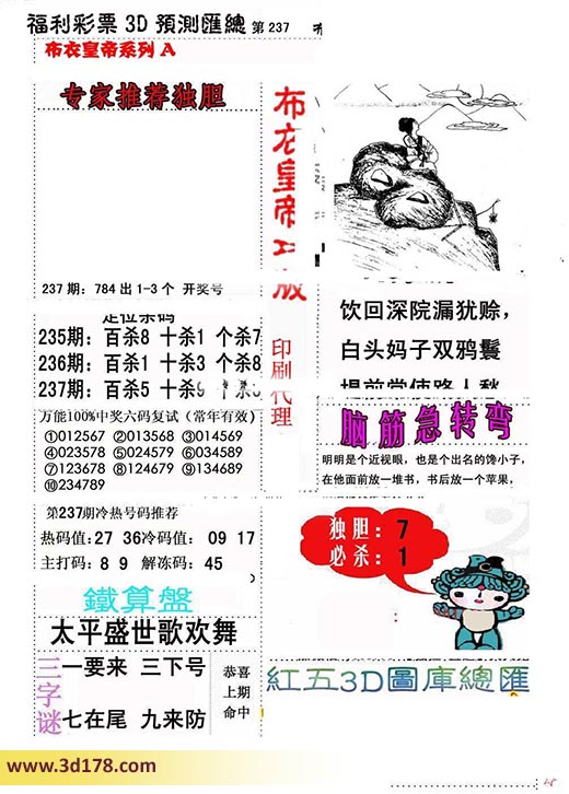 福彩3d第2018237期布衣皇帝A版布衣专家独家推荐: