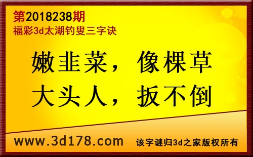 3d第18238期太湖字谜:嫩韭菜,像棵草,大头人,扳不倒