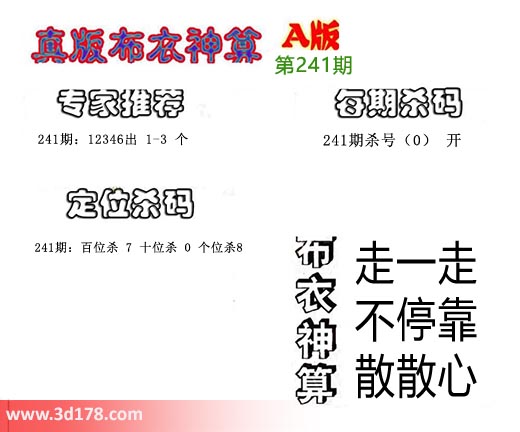 3d布衣神算第241期定位杀码: