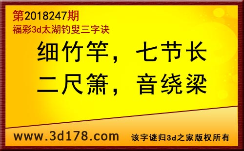 3d第18247期太湖字谜:细竹竿,七节长,二尺箫,音绕梁