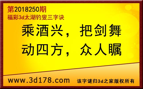 3d第18250期太湖字谜:乘酒兴,把剑舞,动四方,众人瞩