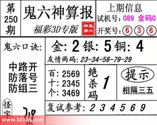 3d第18250期鬼六神算报为您推荐鬼六口诀: