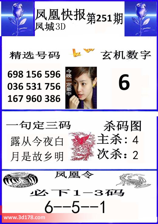 福彩3d凤凰快报图第18251期精选号码推荐: